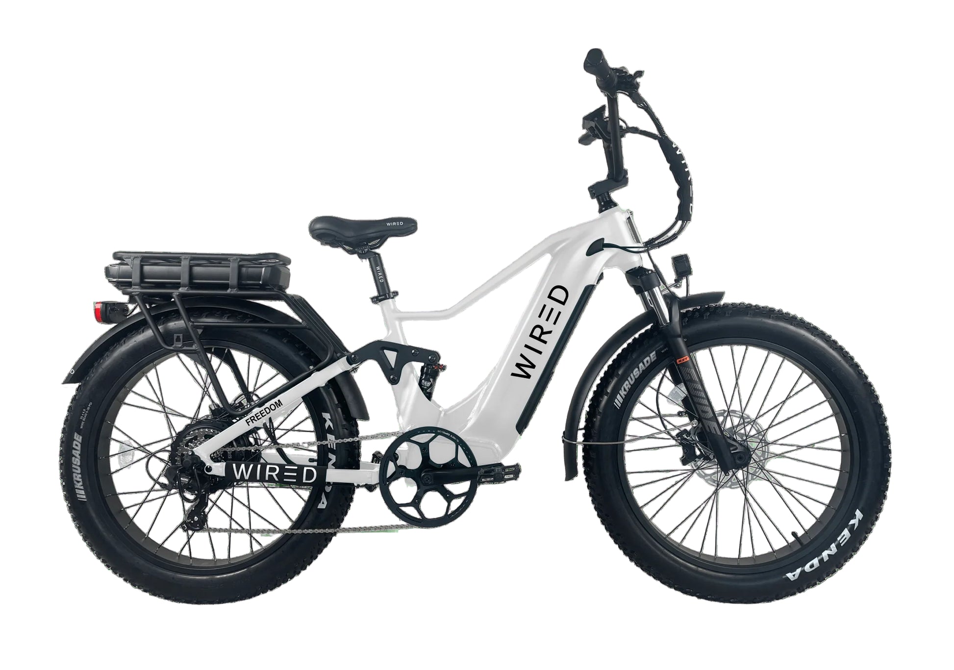 | 1,500W (3,200W Peak) | 60V 35Ah Samsung (Dual) | 90 miles | 35 mph | 115 lbs | 450 lbs | 26" x 4.0" |
